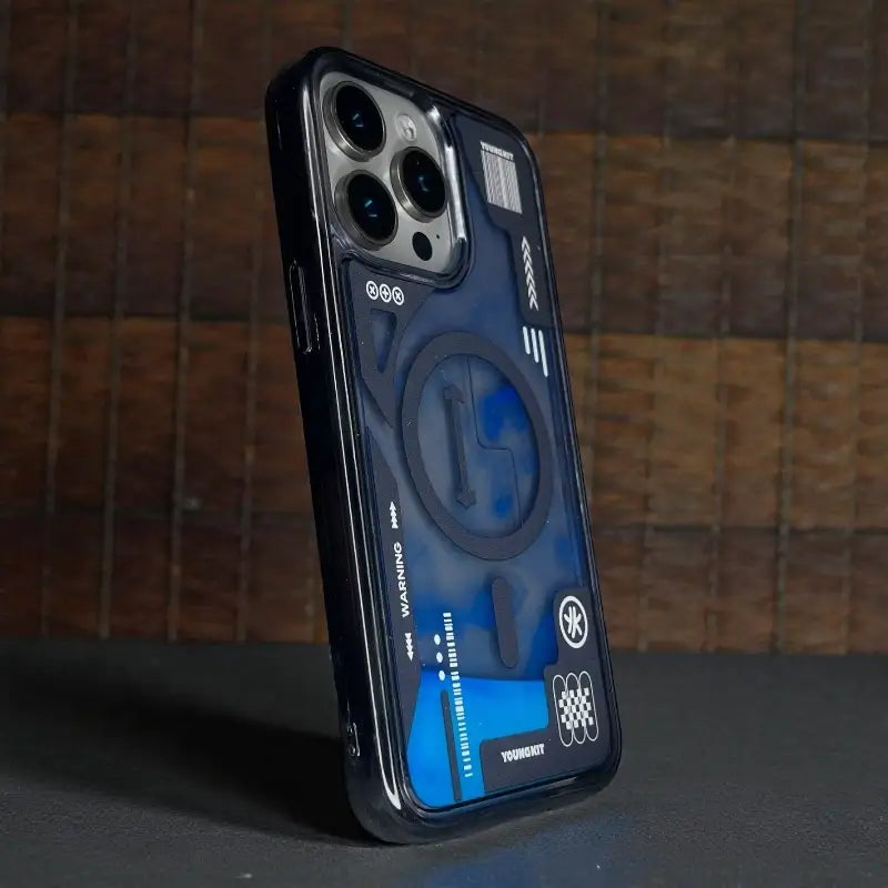 The Cyber Grid MagSafe case features a bold tech-inspired design with a strong, modern look. It supports MagSafe charging and protects your phone while giving it a futuristic style.